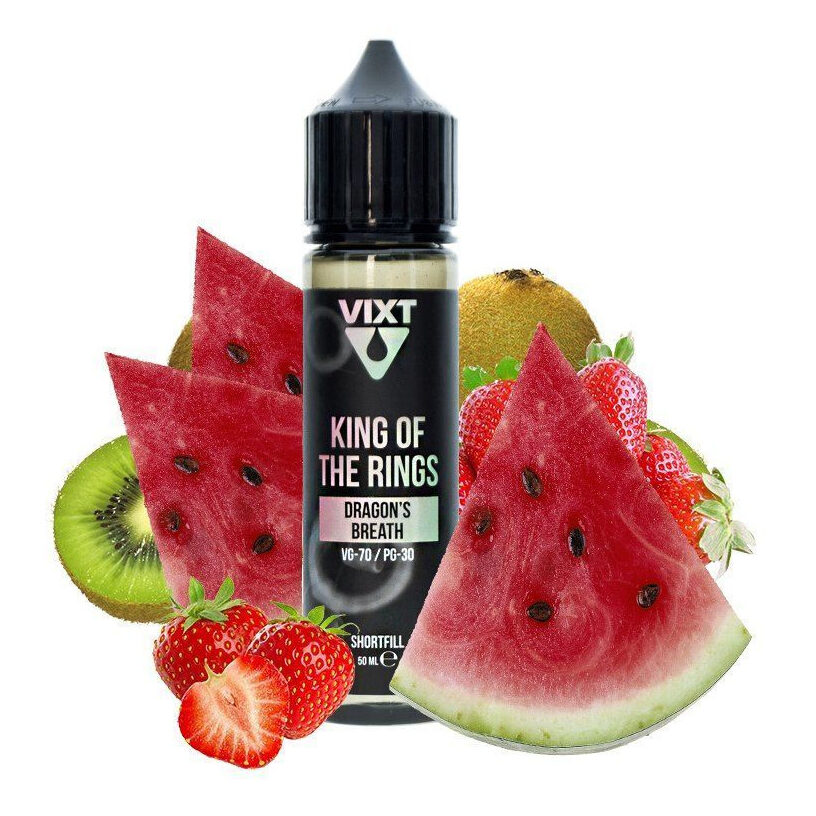 O Vixt King of the Rings Dragon’s Breath combina a frescura da melancia com a doçura e a acidez dos morangos e do kiwi.